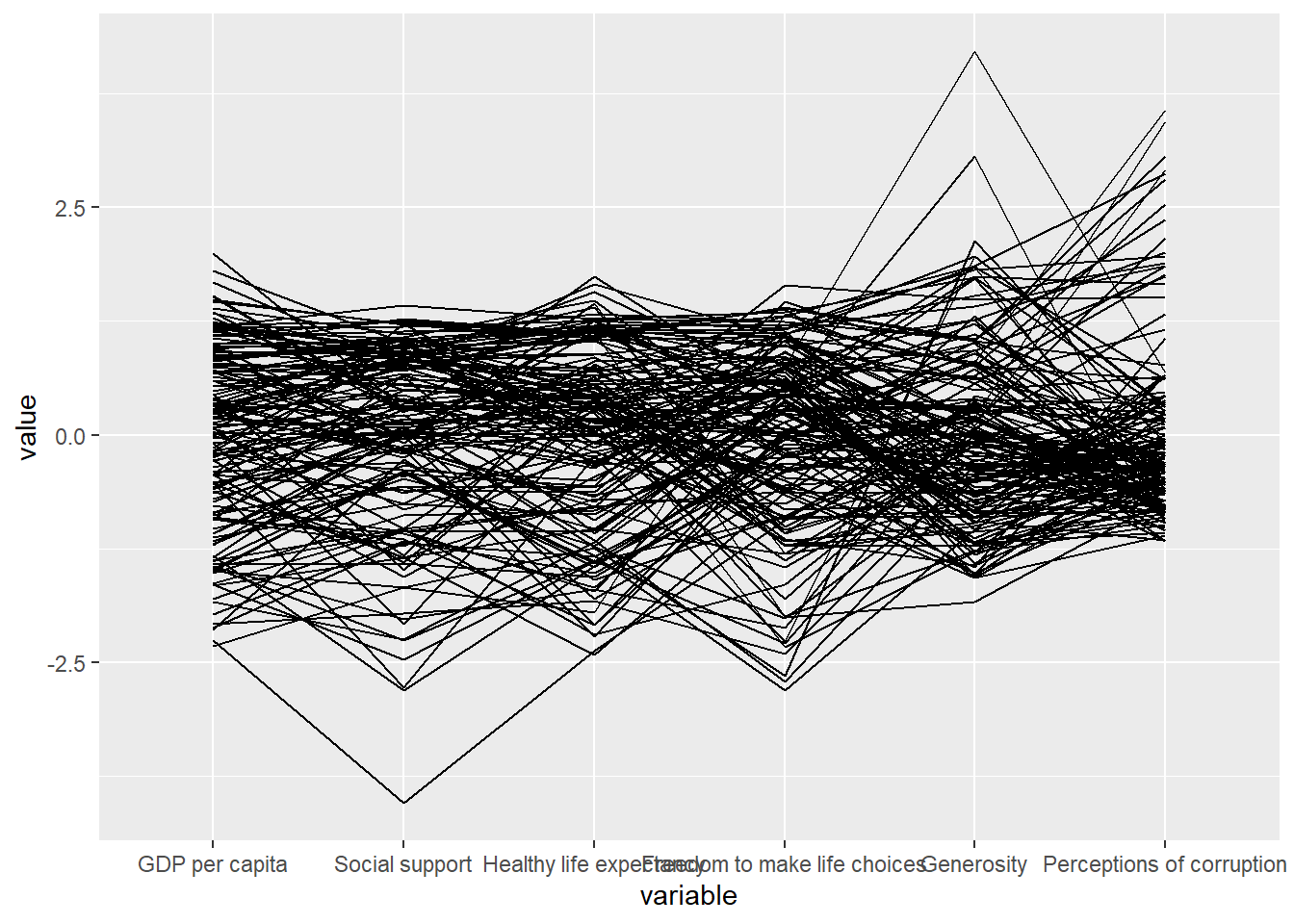 wh <- read_csv("data/WHData-2018.csv")Plot smiple parallel cordinates